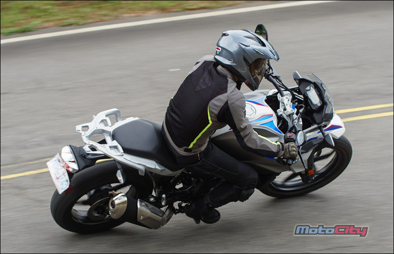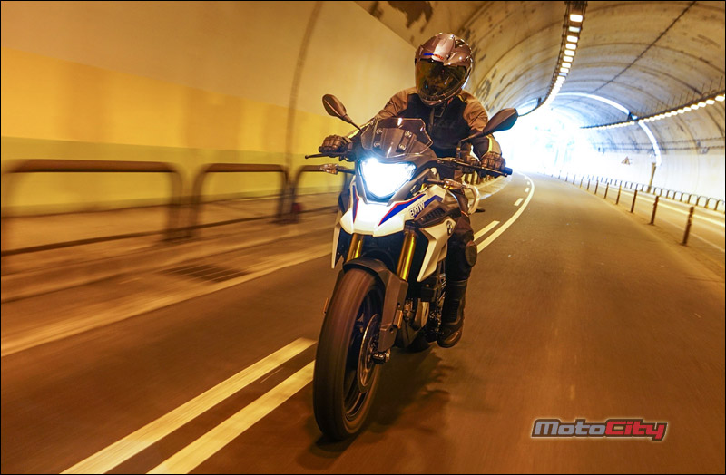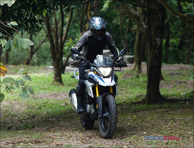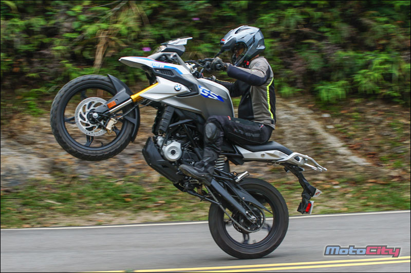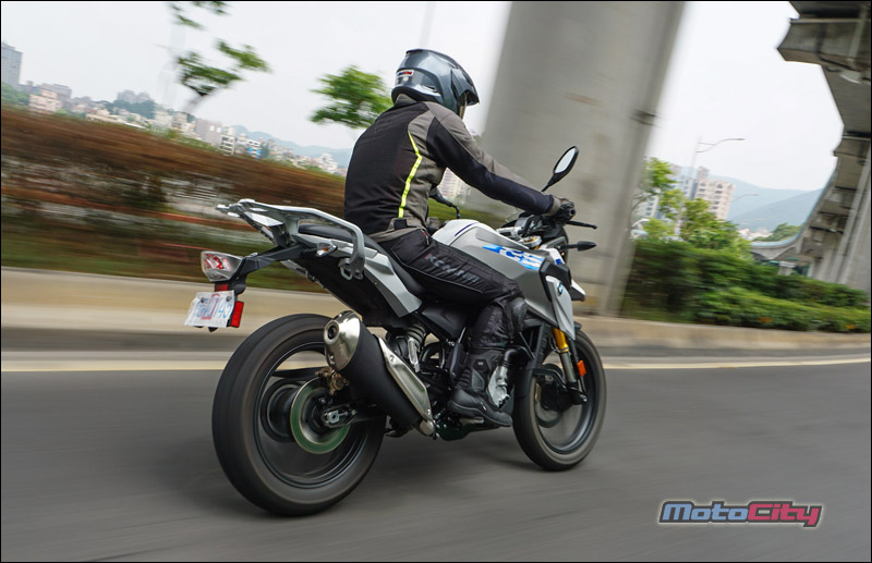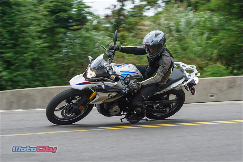 多功能冒險車款 一直都是BMW摩托車廠的得意技與拿手好菜. 這包含了F系列的三款中量級GS車型 經典的林道玩家G650GS. 還有最知名的冒險王-大鳥R1200GS等等 這些車款都具備了幾個特性. 高人一等的座高.耐用的引擎.扎實的底盤 優異的操控性能.與昂貴的造價. 感覺好像排氣量沒有上看600等級 口袋沒準備個六七十萬以上的購車預算 是沒有辦法騎著德國寶馬.在沙堆裡面走跳一般. 不過這樣的迷思.被BMW在2018年 用這款全新多功能冒險車款打破了. 這部車就是今天的主角-G310GS. 造型 BMW在2016年.以年輕族群為目標 推出了一款非常輕巧好上手的運動街車G310R 這部車我們也製作了完整的試車報告 緊接著.BMW車廠再以這部輕檔車的引擎作為基礎. 打造了這款全新的多功能冒險車款G310GS. 如果說G310R是一輛迷你的S1000R 那麼G310GS.就是一台迷你的大鳥-R1200GS了 沒有錯.把兩款車擺在一起 您可以看到許多相同的設計元素 包含大燈下方的經典鳥嘴. 油箱的弧度.兩側的水箱護片. 甚至連前梯田式的前後座墊.還有上翹的大型排氣管 都幾乎是同一個模子刻出來的. 大小兩款車長的極為相似. 這部分對車迷而言.是沒有問題的 因為R1200GS大鳥.確實是一部魅力十足的重機 不過大鳥由於排氣量大.車身尺碼也相當霸氣. 但這都是G310GS所缺少的. 因此BMW工程師.利用細節的變化.讓G310GS這部 輕檔車.雖然少了穩重.卻多了點青春氣息 這包含精短的風鏡設計.與前衛的鋁合金運動輪框 另外車頭鳥嘴兩側的造型進氣孔.都讓這部小老弟 看起來比鳥大哥更動感.更顯精緻. 跨上車 以一部輕檔車而言.這台G310GS 看起來真的是又大要高.是一部會讓新手 或身形較嬌小的騎士有壓力的車. 但實際跨上車之後.你會發現這部車的懸吊 預載行程幅度相當長.讓身高165公分左右的騎士 只要體重超過60公斤.都可以把座高壓下來 輕鬆的用單腳.全腳掌踩地駐車. 另外全配175公斤的車重.其實一點都不重 推起來輕.坐在車上搖一搖.也感覺像是一台150cc 速克達的重量.實際騎上車.你會發現這部G310GS 非常親民.一點騎乘壓力也沒有. 跨上車後你會發現一個有趣的地方 就是這部車的把手高度位置其實很低. 但也離身體很近.因此這部G310GS的騎姿 就像打麻將時.兩手自然垂放抓著桌上的牌尺一般 非常輕鬆.而且掛保證久騎不累. 騎乘 與輕運動街車G310R共用引擎族 因此這部GS在按下啟動鈕發動引擎的瞬間 同樣也能獲得彭派的提速聲浪.待轉速穩定後 怠速狀態下的GS聲浪與震動感 卻又小到感覺好像車子始終沒發動一般. 壓下離合器.入檔駛入車道開始騎乘 G310GS的起步力道非常溫柔. 沒有其他廠牌300輕檔車的那種起步力道 並且輕催油門瞬間.轉速攀爬得非常快且靈敏 一下子就衝破八千轉.因此對於新手而言 要花一點時間拿捏這部車的起步技巧. 不過這部車有一個特點 隨著轉速攀升.動力湧現不會忽高忽低.非常順性 並且這部車的引擎運轉震動.抑制的非常棒 因此只要將轉速保持在4~5千轉區間. 整部車真是又平順.力量又源源不絕 真的是好騎. 性能 G310GS雖然設定為多功能冒險車款 也就是可以在一般道路使用.亦可在砂石地騎乘 但配置的引擎.卻是高轉速的DOHC單汽缸水冷引擎 與一般重視低轉速扭力的林道越野車特性截然不同. 因此你無法期待他像標準的山車.低速時補一下油力量就湧現出來 而是要透過轉速的拉高來召喚動力 一檔補下油門後.34匹的德制馬力.可以輕鬆 的將前輪舉起挺進.另外這部車在加速時 無需像一般單汽缸引擎的車款般. 透過不斷的換檔鎖定轉速區間.利用齒比維持動力. 相反的...G310GS可以將轉速拉到將近萬轉 動力依舊源源不絕.在直線道路實測 三檔拉到七千轉.時速大約來到80公里 接著換到四檔讓轉速挺進八千轉.時速就會達100 單汽缸引擎的車拉到這樣的轉速騎乘.是不是 會震到你不要不要的? 完全不會. G310GS的內置減震平衡軸設計的非常精良 再搭配引擎零件都經過DLC塗層的耐磨抗高溫 與低阻力處理.讓這部單汽缸的多功能車. 真的是可以像運動跑車一般的駕馭. 並且像多汽缸引擎一般的平順.非常厲害. 另外筆者發現.這部車的轉速攀爬.飛也似的快速 這種拉轉速度完全不像是單汽缸引擎的表現. 這也讓這部車在大補油門時.能展現不俗的加速力道 G310GS能有這樣逆天的運轉表現 筆者個人認為應該是與這部車獨特的引擎配置有關 這部車的引擎.是反過來裝的.也就是說 引擎的排氣管是接在引擎的後方 而吸氣與供油系統.配置在引擎的前方.這樣的設計. 符合動力學的順性.讓引擎的進排氣效益非常高. 另外就是引擎的可以配置的更至中. 讓前後車身配重更平均.有利於行進時的穩定表現. 後方排氣設計在先前發表G310R的試車報告中.就有分享過 閱讀過全文的一位熱心車友提出了一個疑慮. 既然這樣的引擎配置好處這麼多.為什麼絕大部分的車. 排氣出口還是設計在前面?供油與吸器配置在後方? 筆者個人認為.這可能是與引擎溫度的控制不易有關 排氣管配置於引擎的後方.最顯而易見的問題就是 排氣頭段的散熱不易.也會導致高溫囤積在汽缸燃燒室 我們知道引擎溫度居高不下就會降低使用壽命. 要解決這樣的狀況.冷卻系統就要配備的比傳統引擎還要好 如此一來成本也跟著提高了.也因此這樣的後方排氣設計 一直無法成為主流設計.只有在少數標榜性能與操控表現 的高價位運動型車款才能見到芳