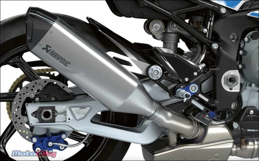 BMW這次配置在M1000RR的Akrapovic鈦合金排氣管 也是經過重新設計.排氣管採用了兩個觸媒轉換器