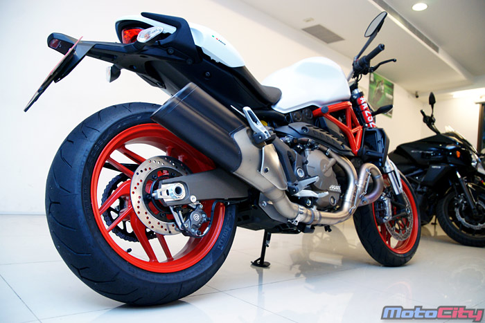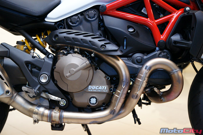 821繼承了M1200的外型與車架,搭載了全新821cc水冷Testastretta 11° 引擎
