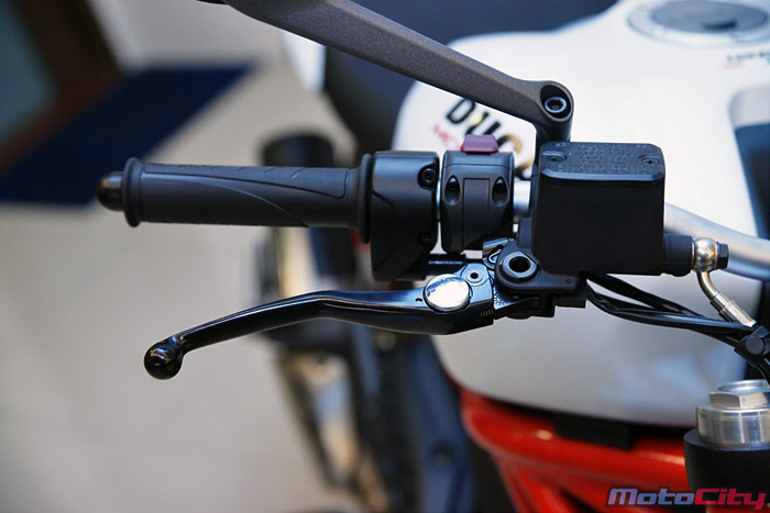 煞車拉桿為油壓式,可做四段間距調整 離合器拉桿則為鋼索式