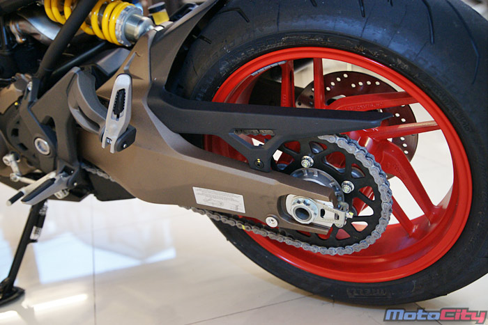 和MONSTER1200相比,最明顯的分別是後搖臂由單搖臂改為雙搖臂的設計
