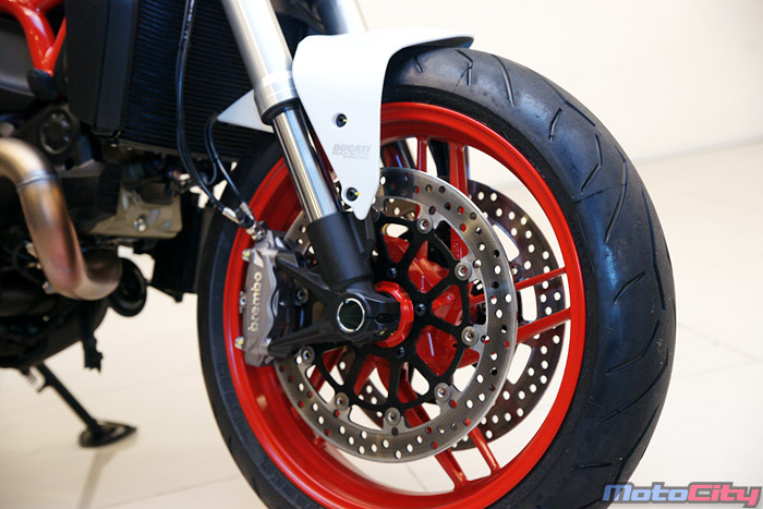 前煞車採用320mm雙碟配上Brembo M4.32單體輻射卡鉗 煞車的效能與M796相較更為出色