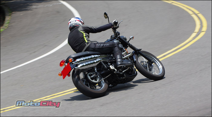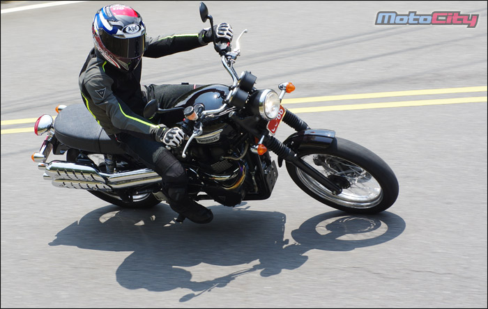 壓彎而過.但也因為它的車重.讓這部Scrambler的靈活度不如現今的運動街車