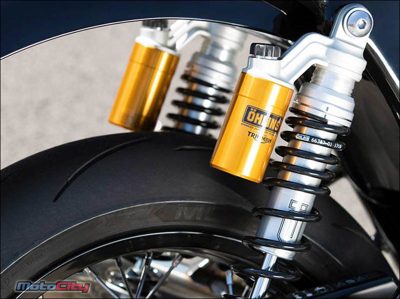 Ohlins雙槍後避震在THRUXTON RS上彈簧採黑化設計